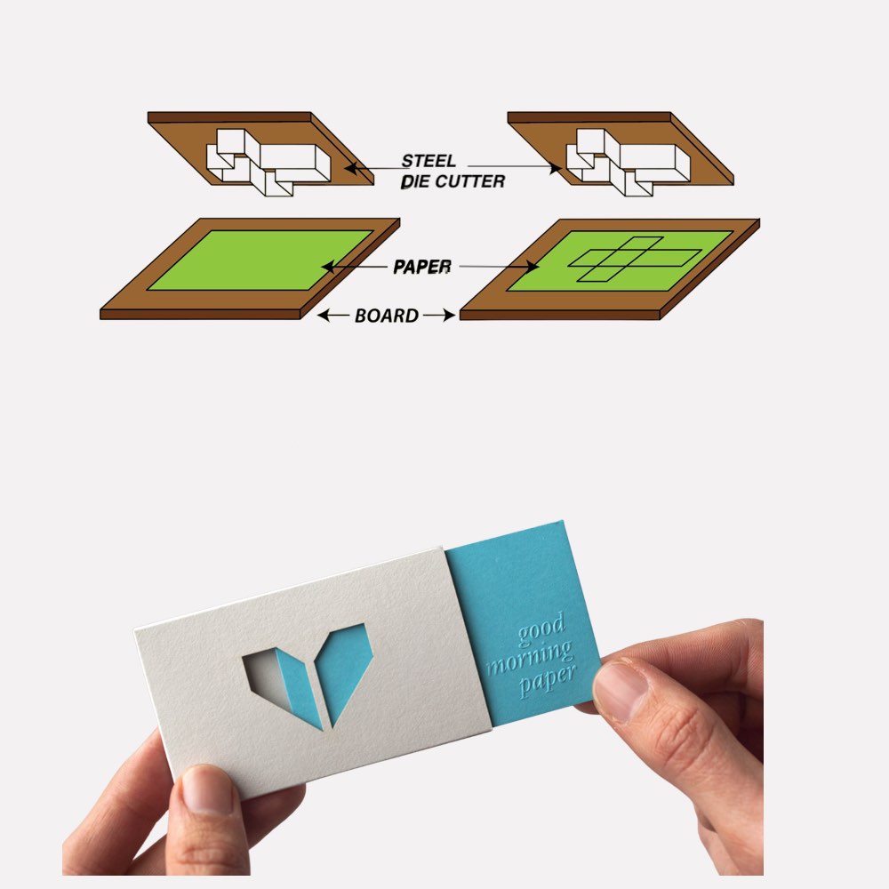 Die cutting is a process that involves creating specialized die-cutting knives based on the design requirements of printed materials. Under pressure, these knives are used to cut or crease printed materials or other substrates into the desired shapes or patterns. This technique is suitable for products using paper with a weight of 150g and above. It is advisable to avoid intricate patterns and lines close to the cutting edges.