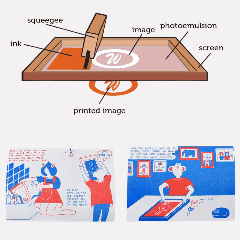 Screen printing involves transferring a design from a template onto a flat surface using a screen, ink, and a squeegee. While fabric and paper are the most common surfaces for screen printing, with specialized inks, it can also be applied to wood, metal, plastic, and even glass. The basic method includes creating a stencil on a fine mesh screen and then passing ink (or paint, in the case of artworks and posters) through it to leave the designed imprint on the underlying surface.